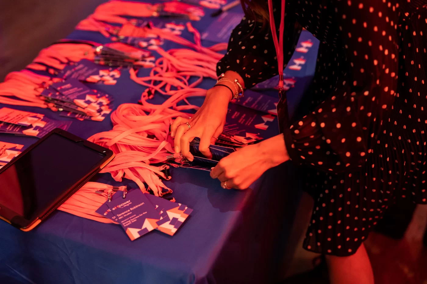 Event branding and design encompass a broad range of design elements. Branding covers the process of creating a unique identity and personality for an event through the use of visual elements and colours that are aligned with a company’s brand guidelines. The branded elements can be utilised across all of the event touchpoints, including social media posts and digital event assets. Event design uses the event’s brand to bring your event space to life. This includes lighting, decor, signage, props, and other visual elements that contribute to the overall look and feel of an event.