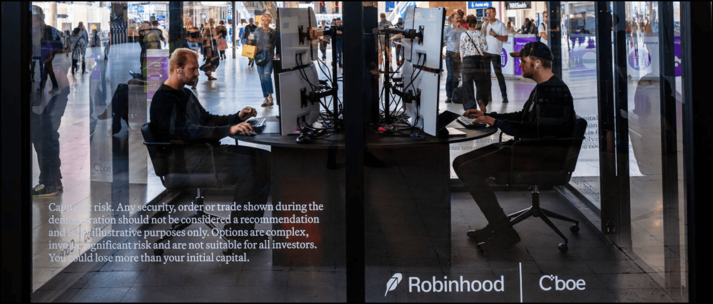 For the launch of Robinhood’s new trading platform, Legend, we collaborated on an experiential brand activation event. We brought their latest innovation to Waterloo train station through a custom-built branded booth with live-traders inside.