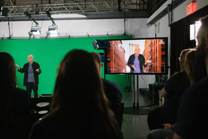 As a multi-site hybrid event, happening concurrently in the USA and UK, the main priority of the client was that the event was cohesive and slick across the three locations and with the remote contributors located around the world. The live production at all sites needed to work together to create a seamless hybrid event with a flawless and consistent live stream.