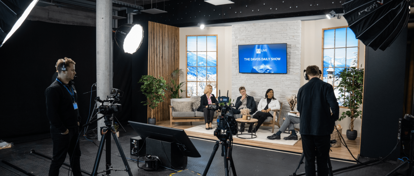 For the 2025 World Economic Forum in Davos, we partnered with FT Live to design and build a fully equipped studio for The Davos Daily Show and partner panel discussions. From a bespoke alpine-inspired set to seamless live streaming, AV solutions, and behind-the-scenes coverage.