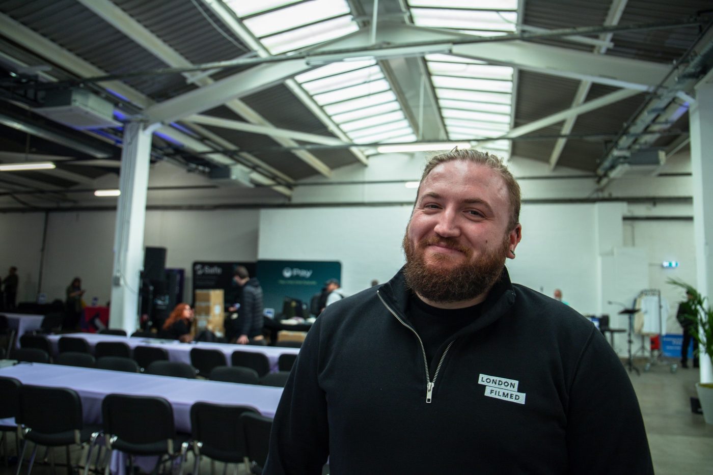 One of the sponsors and speakers surprised us by wearing a novelty helmet to conceal their identity, which wouldn’t have worked with the handheld microphones. Within an hour of this problem being presented, we had a headset fitted and tested behind the scenes with the speaker ahead of them being called to the stage.