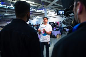 Located at The Truman Brewery, Shoreditch, the event consisted of three main areas – the main stage, three workshop rooms, and a judging area. Ahead of the event, we conducted two site visits to map out the logistics. The site visit initiated a few changes to the original brief to optimise the event output. This included increasing the size of the PA system and the size and shape of the set, adjusting the vision requirements and increasing the total number of brand-coloured uplighters. In addition, the three workshop spaces presented an audio challenge, so we provided headsets for the attendees to create a ‘silent disco’ style workshop. We also conducted a site visit with the power providers we put forward and the in-house wifi/ethernet network providers to ensure their proposals were in line with the venue and our requirements.