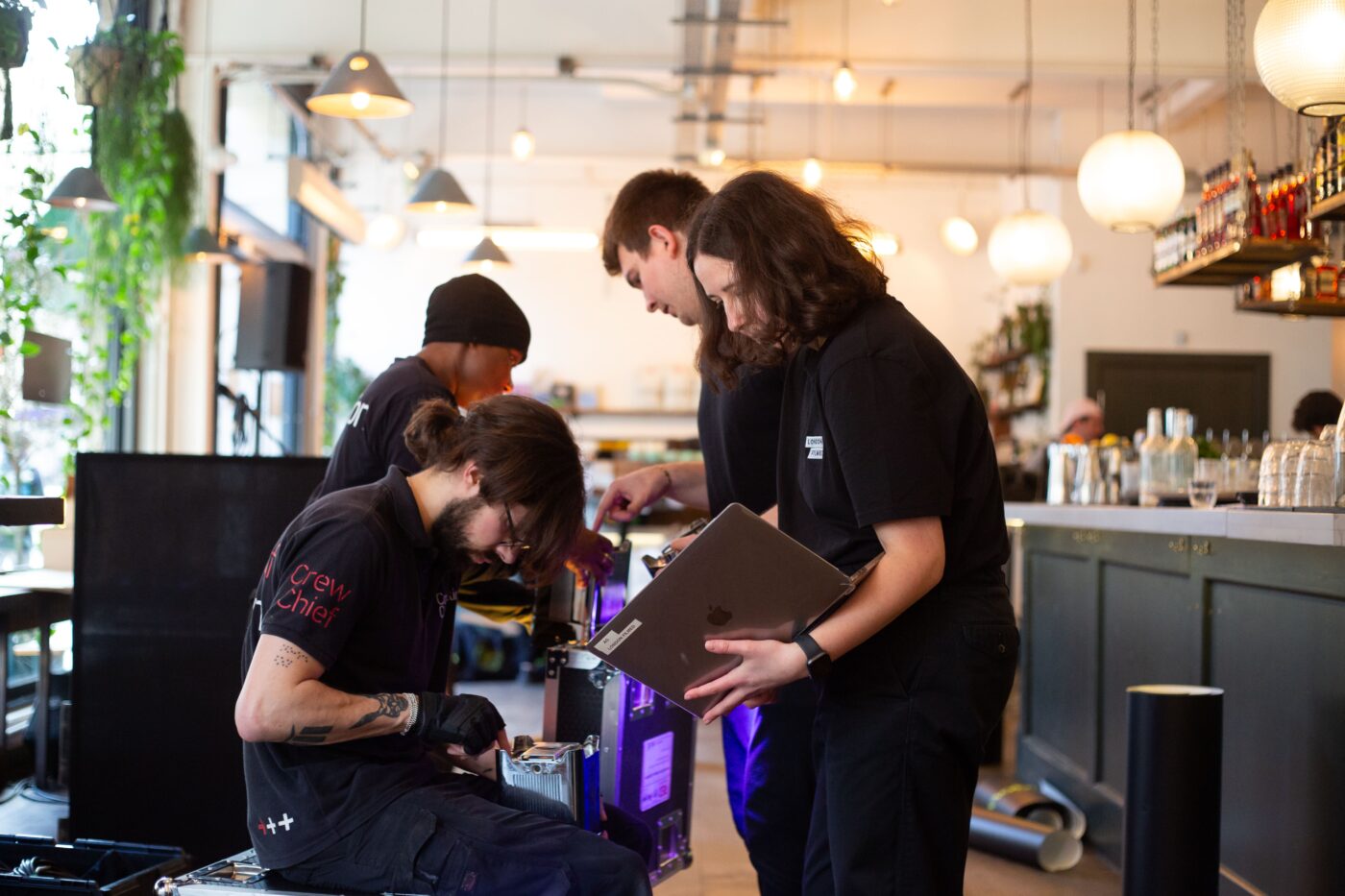 Our team on the day included a project manager, an account manager, AV technicians, and members of our design team, who set up the project, with our live stream engineer and sound technicians taking care of the live production throughout the evening.